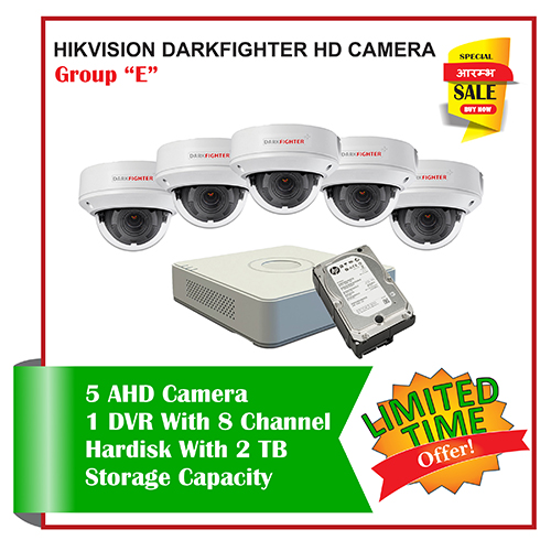 5 Hikvision HD Darkfighter CCTV Camera-Package E