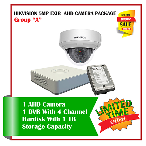 # Camera 5MP@12.5fps, 180° panoramic view, EXIR, 20m IR, Indoor EXIR Fisheye, ICR, 0.01 Lux/F1.2, 12 VDC, Smart IR, ePTZ, DNR, OSD Menu, Built-in Mic, 1.1mm Lens # DVR (4CH) 4 Channel Playback, VGA Output, HDMI Output 1* Sata; Support Mobile Phone, Monitors, P2P Function. # Hard Disk (1TB) Device Type: 3.5 Inch HDD Drive Capacity: 1TB Interface: SATA 6.0 Gbps Cable Power Consumption: 3.3 w. #Other accessories Charge as per actual.