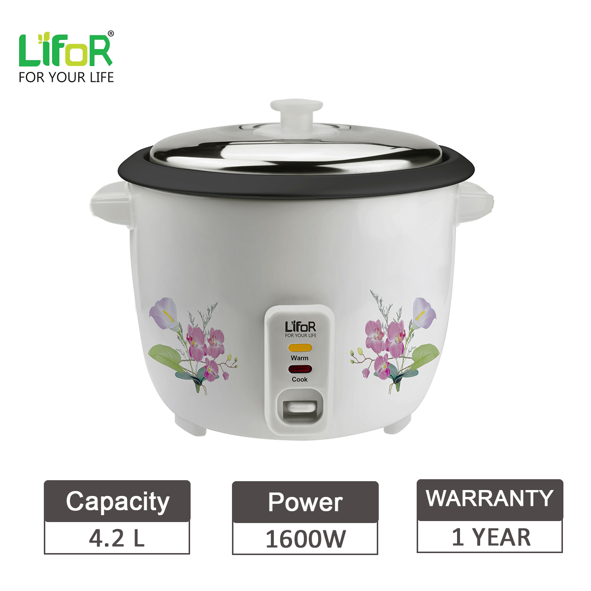 Brand:LiforMade in IndiaCapacity: 4.2LitresLow Energy ConsumptionNon-Sticky Inner PotThermostat TechnologyAuto Cook and Warm System