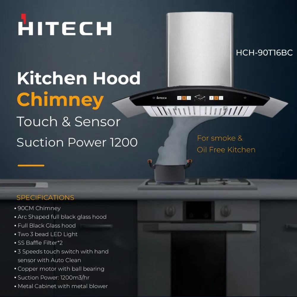 Hitech Kitchen Chimney 90cm Touch Auto Clean With Baffle Filter and Sensor System HCH90T16BC